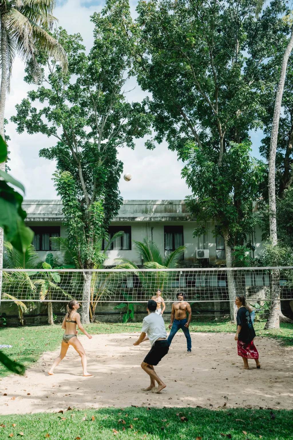 Das Camp ist darauf ausgelegt, neue Freundschaften zu knüpfen und bietet viele Gemeinschaftsbereiche wie unseren großen Esstisch, an dem jede Woche fünf gemeinsame Abendessen stattfinden, oder unserem Volleyballfeld, das den Mittelpunkt unserer familiären Atmosphäre in dem Camp bildet. Auch gibt es ruhigere Bereiche für Surfer, die surfen und arbeiten, und einen Massageraum, in dem du dich nach einem langen Tag entspannen kannst. Weligama liegt in der Nähe von Surfspots für jedes Niveau und hat einen gemeinschaftlichen Fokus, der es leicht macht, Kontakte zu knüpfen und jede Menge Spaß zu haben!