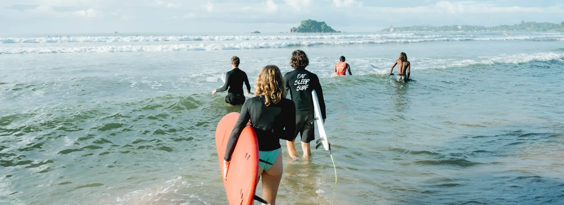 Der Hauptstrand von Weligama ist ein Beach Break, was den Einstieg ins Wasser recht einfach macht. Deine Surfguides zeigen dir, wie du den Channel nutzen kannst, um leicht hinauszupaddeln. Bei den nahe gelegenen Riffbreaks musst du beim Raus- und Reinpaddeln auf das Riff achten. Bevor du ins Wasser gehst, hör dir die Erklärungen deines Surfguides zu jedem Spot genau an.